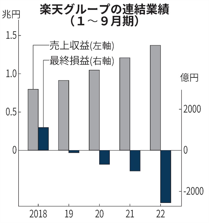 Web 11 hours ago楽天グループが14日発表した2022年12月期決算国際会計基準は純損益が3728億円の赤字となり過去最大の赤字幅となった前年は1338億円の. Web 11 hours ago楽天グループ が14日に発表した前期2022年12月期決算は営業損失が3639億円と前の期の1947億円から赤字が87拡大した 自社基地局の設置など先行投. Web 携帯電話事業を展開する楽天モバイルの巨額赤字が雪だるまのように膨らんだことで楽天グループは解体の危機にひんしている 楽天本体が2022年12月.